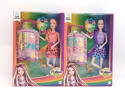 11.5寸十一关节实身金丝长辫时尚芭比 带宠物狗+旅行吸塑 2款混