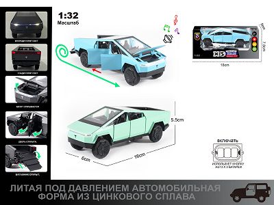 产品名称: 俄文1:32压铸锌合金灯光音效 特斯拉皮卡车模