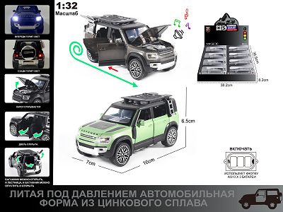 产品名称: 俄文1:32压铸锌合金灯光音效路虎卫士110-越野车车模8只/展示盒