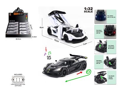 英文1:32压铸锌合金灯光音效柯尼塞格车模 8只/展示盒