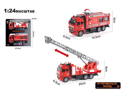 俄文1:24压铸锌合金消防云梯车+水罐车双层套装