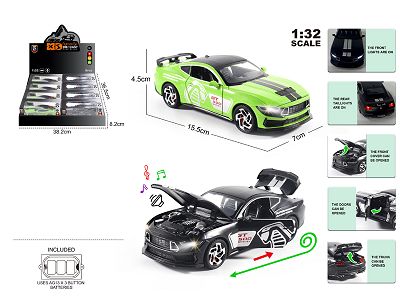 英文1:32压铸锌合金灯光音效福特野马GT500车模8只/展示盒