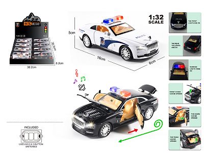 英文1:32压铸锌合金灯光音效劳斯莱斯闪灵警车车模 8只/展示盒