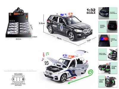英文1:32压铸锌合金灯光音效宝马X5警车车模 8只/展示盒