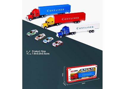 合金拖头车组合配2只车(3色)