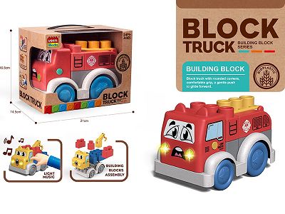 D款麦秆料灯光音乐(消防车)积木工程车