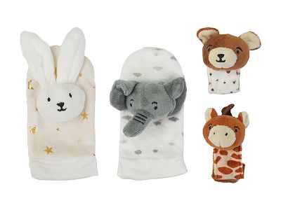 婴童毛绒玩具四件套 星空野生动物手腕带+摇铃袜