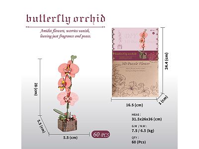 DIY 3D木质/木制花/拼装花/木质拼装模型花/蝴蝶兰