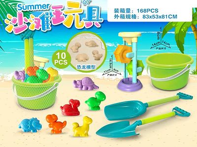 绿桶配恐龙沙滩配件+沙漏(10PCS)