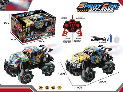 产品名称: (包电3.7V锂电池)1:18八通遥控侧行喷雾越野涂鸦酷路泽跑车