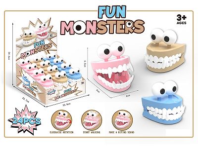 跨境电商超市地摊特价网红新奇礼品赠品益智早教婴童幼儿童食品装糖玩具上链发条回力大眼睛咬牙(24PCS)