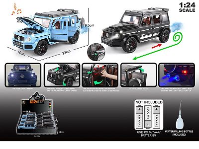 英文1:24压铸锌合金单排气喷雾灯光音效奔驰巴博斯星空顶车模8只/展示盒