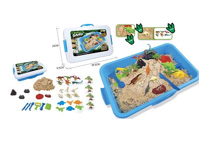 太空沙场景套装-恐龙场景主题+收纳箱+1200g太空沙(手提收纳箱)