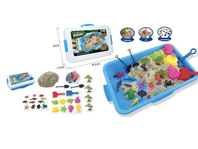 太空沙场景套装-海洋世界场景主题+内置沙盘+750g太空沙(展示彩盒)