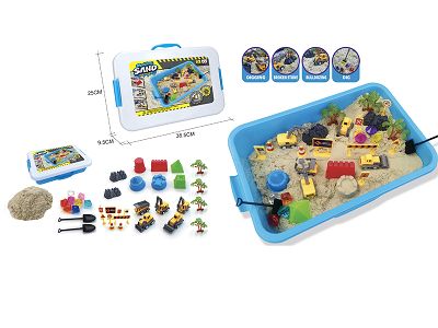 太空沙场景套装-工程车场景主题+收纳箱+1200g太空沙(手提收纳箱)