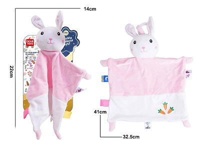 彩色动物款亲肤安抚巾--粉兔