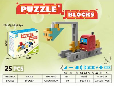 非乐高式吹塑PE积木挖掘机(Digger)25PCS 益智积木拼装积木大颗粒积木拼插积木工程车积木