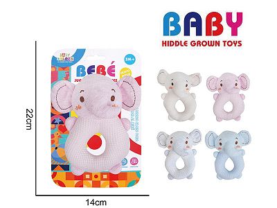 婴儿卡通有机棉手摇圈---大象(4色)