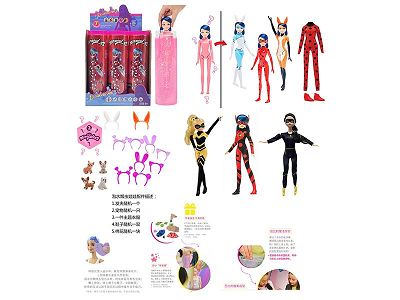 11.5寸实身泡水变色Miraculous飘虫雷迪系列带发夹。鞋子,膨胀海绵,小宠物 4样不同惊喜配件 6款6PC混装