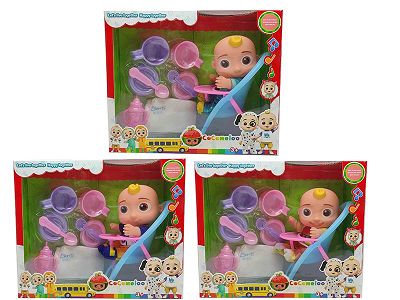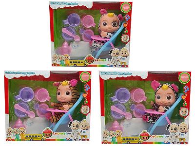 10寸搪胶cocomelon超级宝贝带4首主题音乐和圣诞主题音乐3款不同主题人物混装带过家家套装和尿不湿带学步骑
