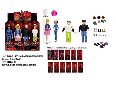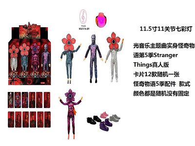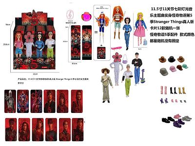 高端11.5寸11关节实身带七彩灯光音乐主题曲怪奇物语第5季Stranger Thing真人版芭比带金貂卡片一张带怪奇物语主题套件4款12PC混装
