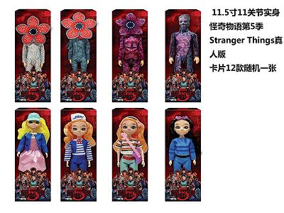 高端11.5寸11关节实身带七彩灯光音乐主题曲怪奇物语第5季Stranger Thing真人版芭比带金貂卡片一张带怪奇物语主题套件8款12PC混装