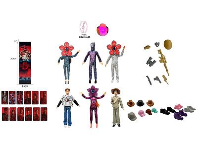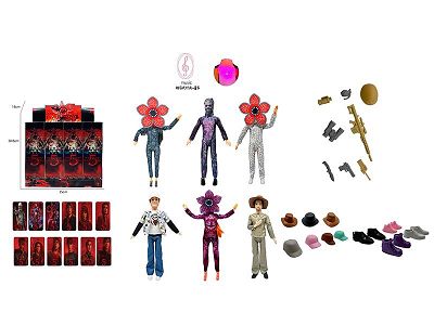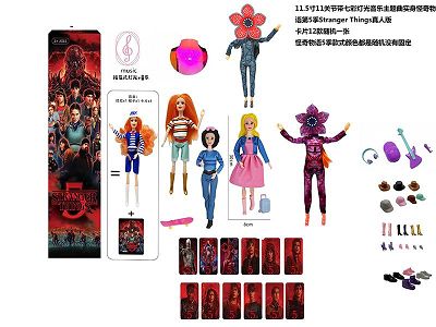 高端11.5寸11关节实身带七彩灯光音乐主题曲怪奇物语第5季Stranger Thing真人版芭比带金貂卡片一张带怪奇物语主题套件6款12PC混装