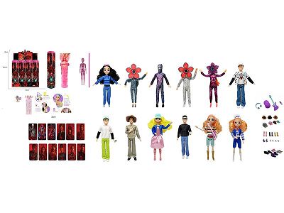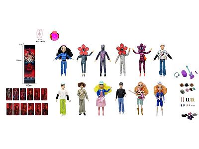 高端真眼珠11.5寸11关节实身带七彩灯光音乐主题曲怪奇物语第5季Stranger Thing真人版芭比带金貂卡片一张带怪奇物语主题套件12款12PC混装