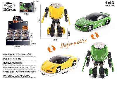 英文1:43锌合金奔驰/法拉利488变形汽车车模 24只/展示盒