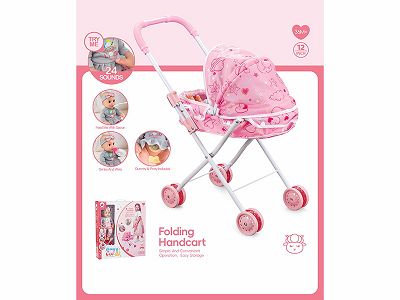 婴儿推车+12寸头手脚搪胶身体吹气带IC,24声喝水撒尿公仔