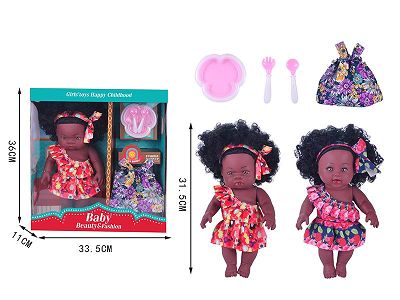 12.5寸全搪胶黑人娃娃公仔套装娃娃带功能 2款混装
