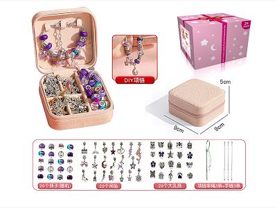 A款双层方盒 紫色基础 潘多拉手链(66件套女孩饰品套装过家家玩具