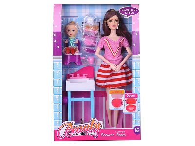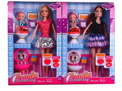 11.5寸大脚芭比带三寸小孩配厕所套装2款混装