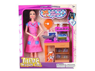 宠物护理主题11.5寸关节手大脚芭比配宠物护理套装