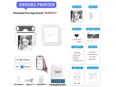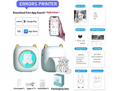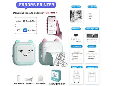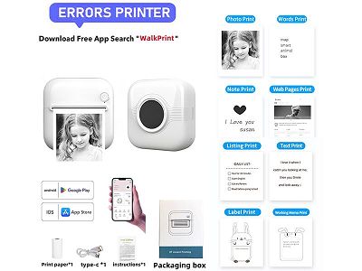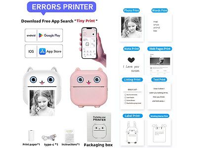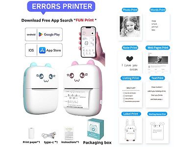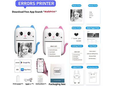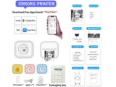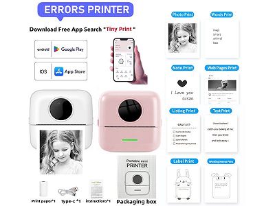 迷你标签照片热敏打印机手机APP蓝牙连接黑白打印 (主机+充电线+说明书+1卷打印纸)