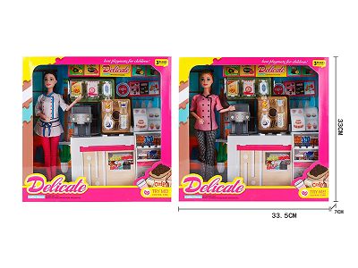 11.5寸芭比娃娃,配咖啡机主题套装(2款混装)