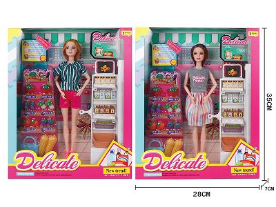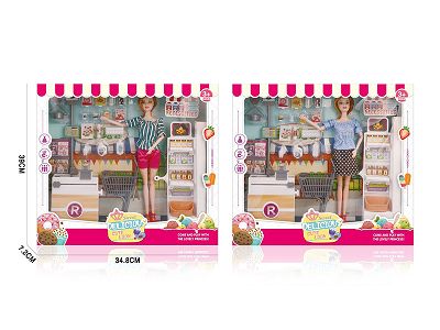11.5寸时尚芭比娃娃,配超市收银台主题套装(2款混装)