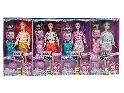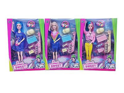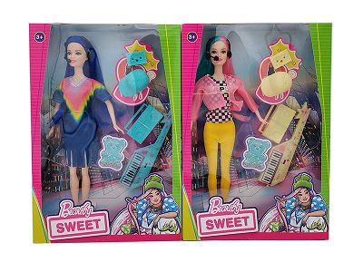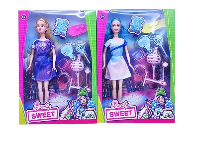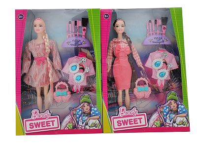 11.5寸实身 活手时装裙芭比带 耳环 包包 化妆品2款混装