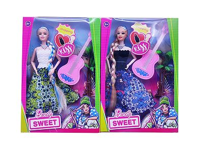 11.5寸实身9关节时装裙芭比带 吉他 椰树2款混装
