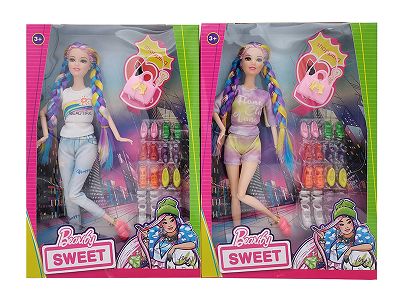 11.5寸实身 活手时装裙芭比带 滑板车 头盔吸塑2款混装