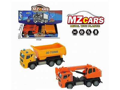 合金回力工程车 (吊车+自卸车)