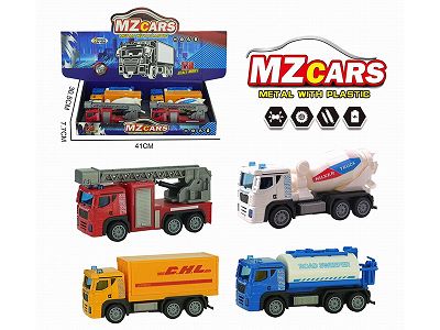 合金城市回力车 (货柜车+滚筒车+洒水车+云梯车)