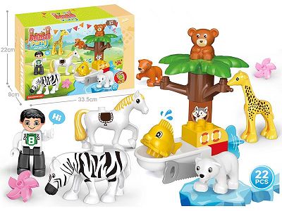 动物派对动物园兼容乐高大颗粒积木拼装科教益智解压过家家卡通玩具22PCS
