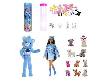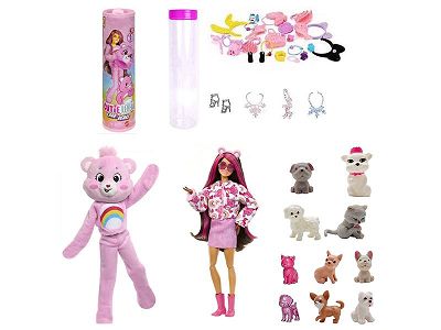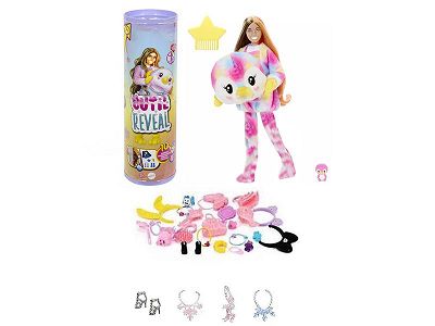 21代高档惊喜11.5寸12关节实身彩虹狗萌宠芭比带1套动物毛绒时装衣服。带发夹,手提包,鞋子。4款配件