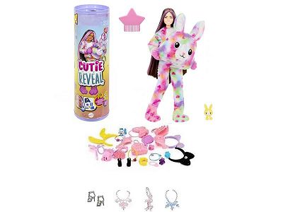 21代高档惊喜11.5寸12关节实身彩虹兔萌宠芭比带1套动物毛绒时装衣服。带发夹,手提包,鞋子。4款配件