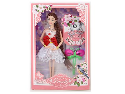 【英文】11寸实身9关节时尚长发芭比娃娃