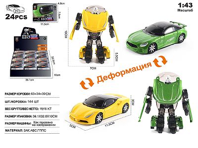 俄文1:43锌合金日产GTR/保时捷变形机器人车模 12只/展示盒