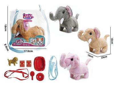 电动毛绒走路大象+配件2儿童过家家遛宠物玩具