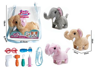 电动毛绒走路大象+配件3儿童过家家遛宠物玩具