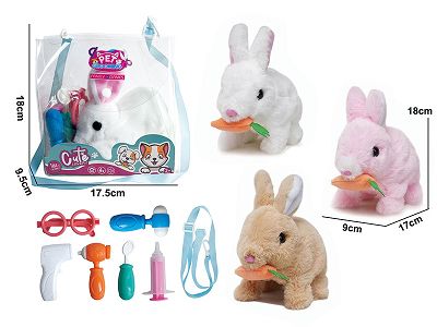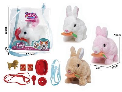 电动毛绒走路兔子咬萝卜+小配件2儿童过家家遛宠物玩具